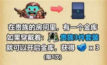 贵族的房间左下角有一个小金库,身上穿着贵族套装,可以把它打开,奖励3钻,限1次。