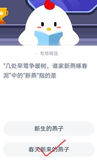 今天的问题是:“几处早莺争暖树,谁家新燕啄春泥”中的“新燕”指的是?