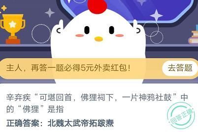今天的问题是:辛弃疾“可堪回首,佛狸祠下,一片神鸦社鼓”中的“佛狸”是指?