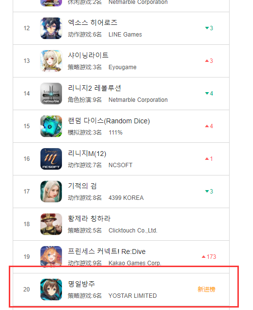 韩服方面,《明日方舟》上线后稳居韩国App Store免费榜第二,目前排在其前方的免费榜冠军是昨日上线的新游《精灵:龙族召唤师》。