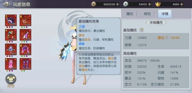 “身法”提供闪避,韧性;额外为七杀提供攻击力。