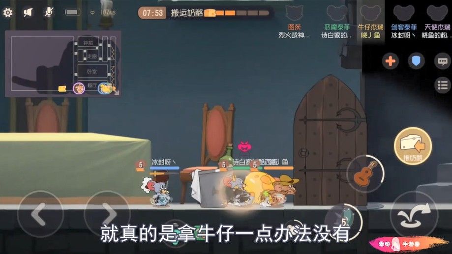 第一块奶酪4人推,有显示的,估计那次的BUG修复好了吧,不然的话老鼠越加难玩了,没玩过图茨但是大致也考到过她的技能,就是那个“喵叫”,伤害好像不是一次性触发的,貌似还要叠加吧,如果这样说的话,牛仔杰瑞的“吉他”技能,技能效果正好可以免疫“喵叫”,除非用道具,不然猫的那个技能对牛仔来说,完全没用了。