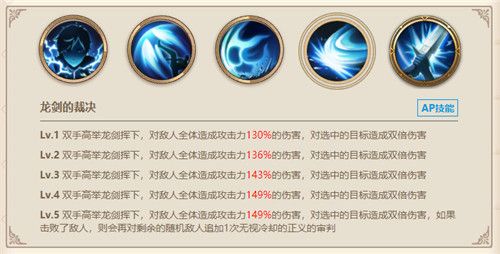 龙剑的裁决:这个技建议优先升级,一定要优先升到满级。技能的满级效果,用来最后的清场收尾再合适不过了,LV5级的技能效果是非常的实用的。