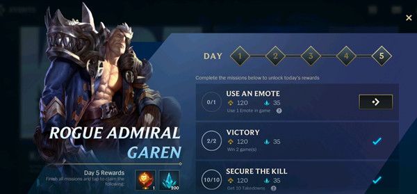 在LOL手游的新手任务第五天当中有一项就是要求玩家use an emote。