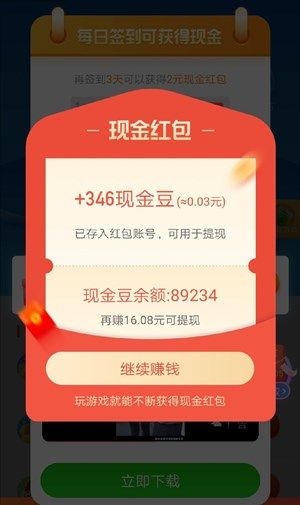 新人注册就送红包,首次满0.3元即可变现。现在这款软件上面能够变现的金额还是比较小的,想要完全通过这款软件开赚取收益还是有点不可靠,几块钱还是可以获得的。