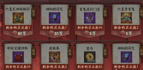 六星转换券、蓝票、皮肤券、6星青吉鬼、勾玉;