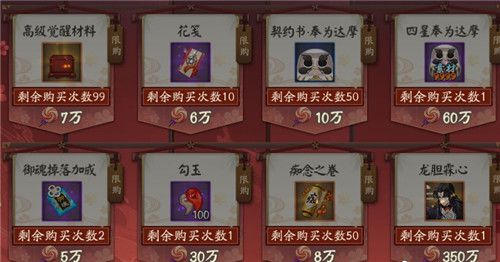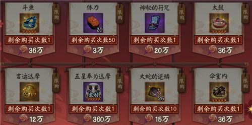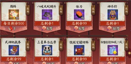 本次活动兑换,包括紫蛇皮、体力、低星结界卡、3星白蛋、经验加成buff;