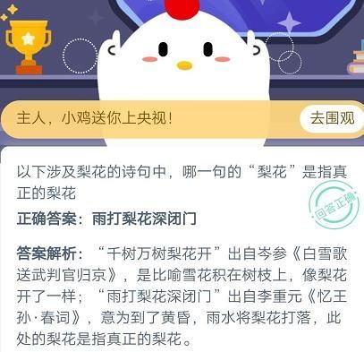 蚂蚁庄园11月5号答题答案是什么?以下涉及梨花的诗句中哪一句的梨花是指真正的梨花答案介绍