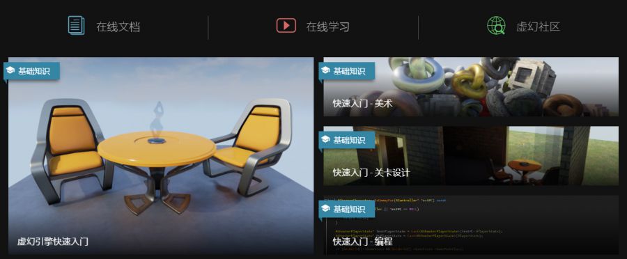 Epic也很贴心地直接提供了文档教程和简单入门教学,点击下图的“虚幻社区”甚至是导向了虚幻引擎在知乎的官方专栏: