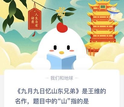 今天的问题是:《九月九日忆山东兄弟》是王维的名作,题目中的“山”指的是?