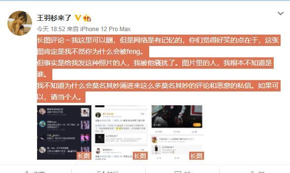 王羽杉也在微博做了回应,大致就是很多人问她图中哪个女的是不是她本人。