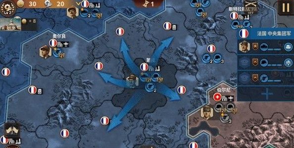 势力划分更加多样,不仅仅是以国家区分,而是采用了集团军的划分方式。一个国家可以有多个集团军,一个集团军代表了一方势力,每个集团军都有所属的集团军司令。