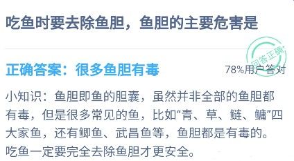 蚂蚁庄园11月21日答案最新:吃鱼时要去除鱼胆鱼胆的主要危害是什么?