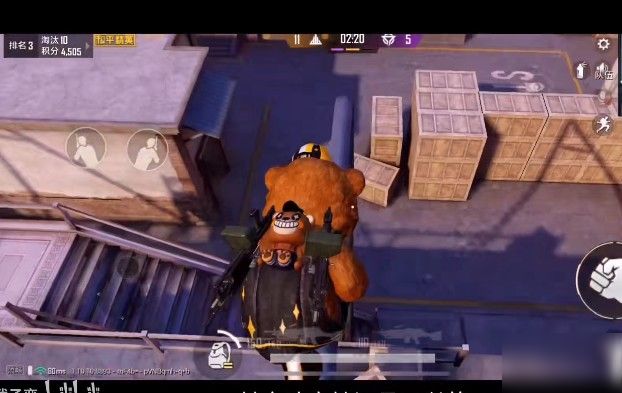 爬上箱子,尽可能往后站,对准第三节火车使用抓拍,就能爬到车顶。然后我们爬上钢管(注意:必须要先翻到外面才能爬上去),这里视野开阔,可以放心刷分。