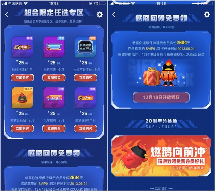 下拉活动页面还有各种道具可以单独购买 另外12月18日还可免费领取超级会员