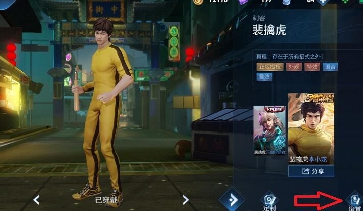 三、点击语音,这样我们设置李小龙皮肤的语音了。