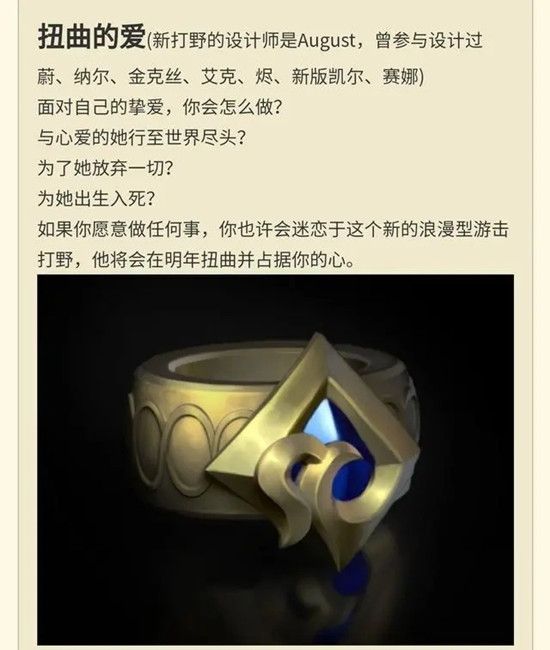 拳头在介绍英雄蓝图的时候提到过,这个英雄是浪漫型的游击型打野,不知道最后拳头会做成什么样。