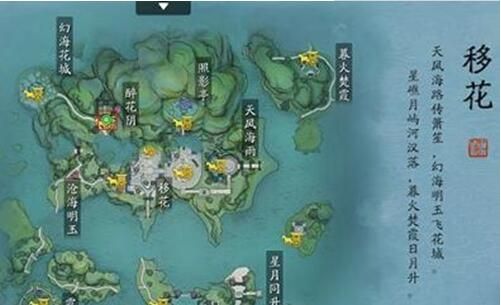 1、首先地图找到移花的醉花阴,然后直接传送。