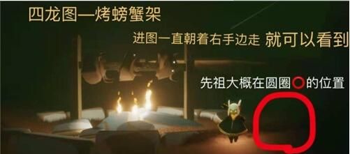 先祖位置在墓土四龙图烤螃蟹处,进图后往右前方飞行,应该就能看到。熟悉四龙图的玩家找起来还是很快的。
