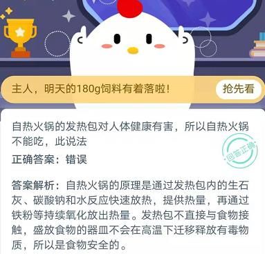 自热火锅的发热包对人体健康有害所以自热火锅不能吃此说法?蚂蚁庄园11月16日今日答案