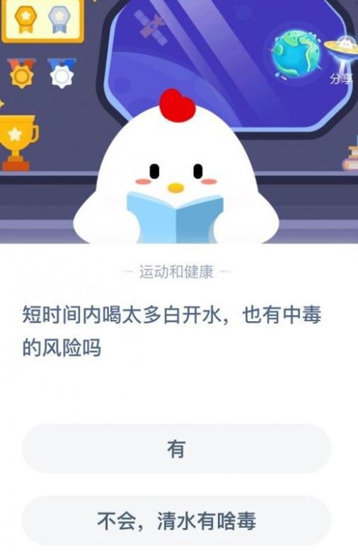 短时间内喝太多白开水也有中毒的风险吗?蚂蚁庄园11月14日今日答案