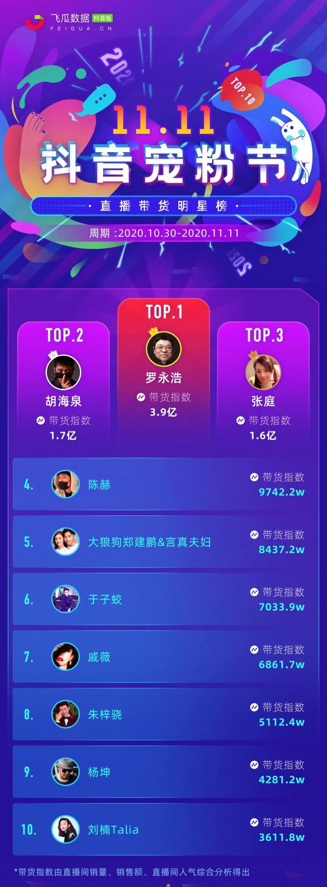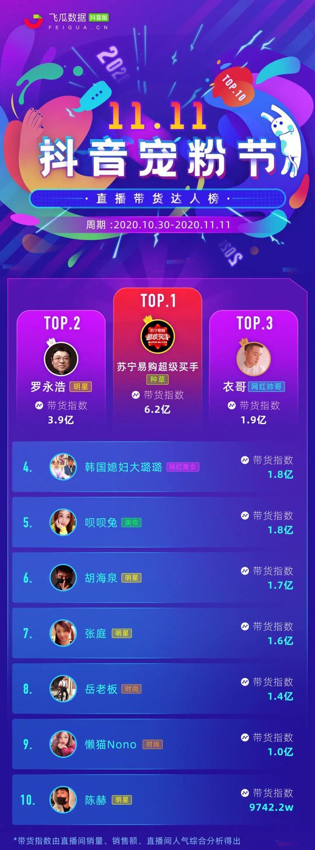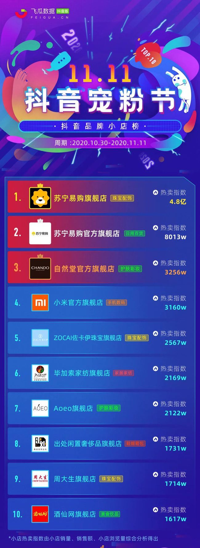 2020抖音双十一成交额:抖音直播带货销售额出炉