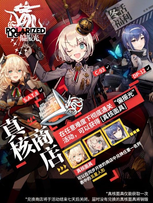 ps:真核面具可以在同步开放的商店中兑换任意一名列表中的五星人形,包括ADS/FP-6/PA-15等。