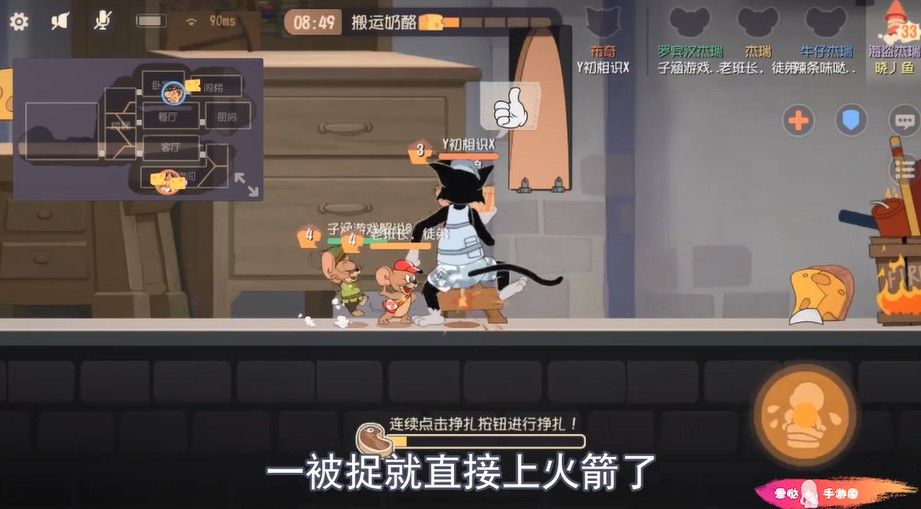 队友被捉,准备试试高空无敌旋转回首掏,结果(乌鸦飞过),墙洞出现准备打洞去,毕竟满血了(机关枪),第一次发现果盘打人伤害这么高,记得之前一次机械鼠被果盘打中是打不爆的,怎么现在直接血都打没了,如果这样说的话,一但有几个果盘的话,黑鼠对着放,那场面(机关枪)。