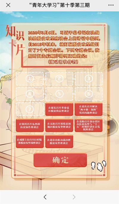 青年大学习七个专题会议顺序按照时间先后顺序应该怎么排序?这个问题困扰了大家好长时间,很多玩家都不知道应该怎么选择顺序,今天小编就将正确的答案分享在下面,让各位玩家能尽快的找到正确的顺序。