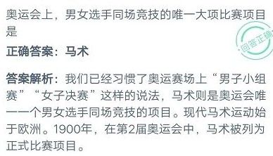 奥运会上男女选手同场竞技的唯一大项比赛项目是?蚂蚁庄园10月30日小课堂答案
