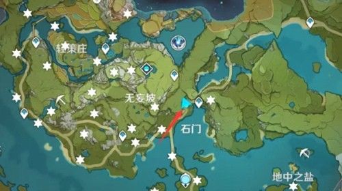 传送到石门传送点后直接往下下楼梯即可,这个商人的位置就在卖茶大爷那里。