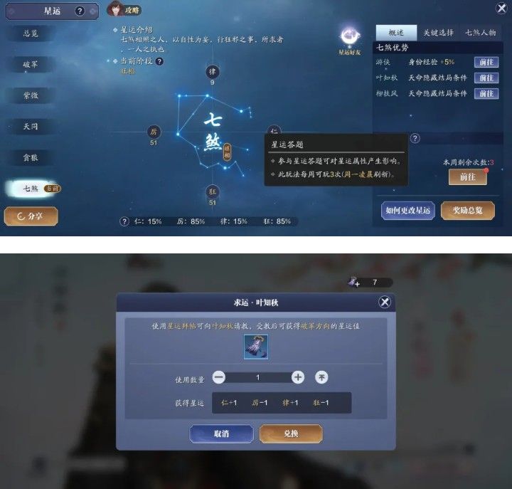 由于叶知秋的特殊结局里有星运要求,公测版本只要到曾经达过某个星运就可以解锁星运前置条件,所以第一天推荐你们成为破军的小伙伴们应该都有资格;