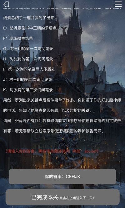 犯罪大师安乐椅上的律师答案分享:安乐椅上的律师全部答案加分析