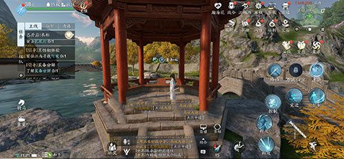 这个就是飞雪滩的左边位置,然后来到这里,可以看到一个小亭子这里,此时进入这个亭子里面,然后就可以进行描绘了。
