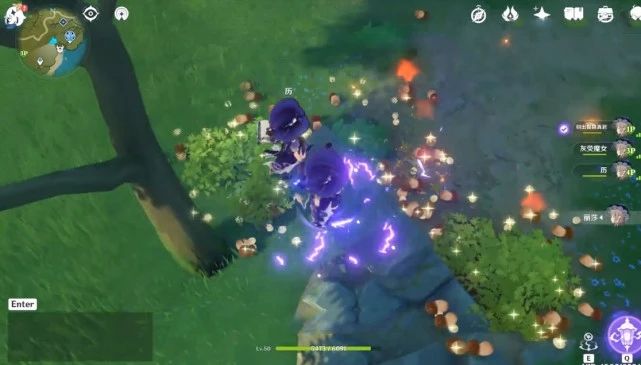 大家都知道平时在探险的时候,这些草丛如果打掉的时候是有概率会爆发出一些东西的,那么在这个bug之前,我们只需要用丽莎电烈焰花,并触发我们的超载反应,周围就会不断的爆发出这些制作食物所需要的食材。平时的话收集起来也是比较麻烦,那么用这个bug呢我们可以无限收集。