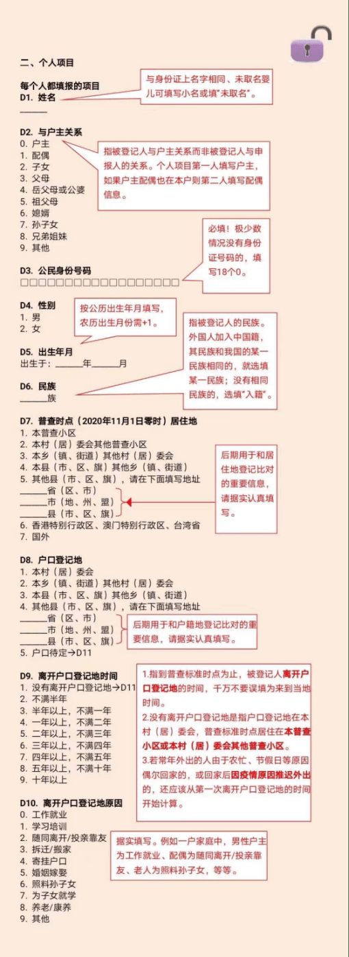 第七次全国人口普查2020具体内容填写方法