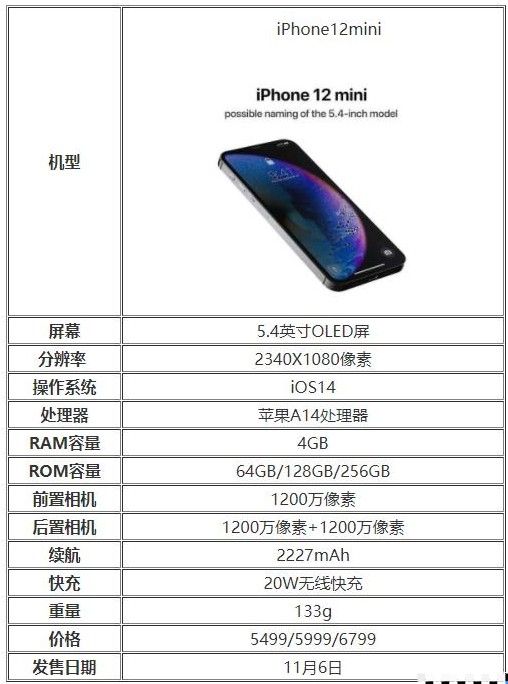 iPhone12mini配置参数表