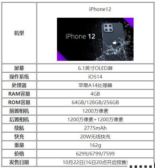 iPhone12配置参数表