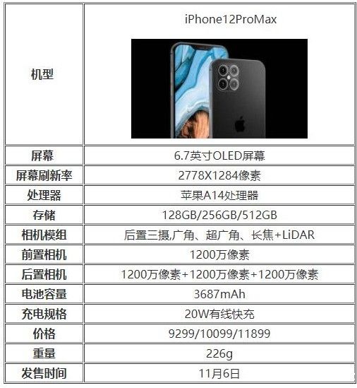 iPhone12ProMax配置参数表