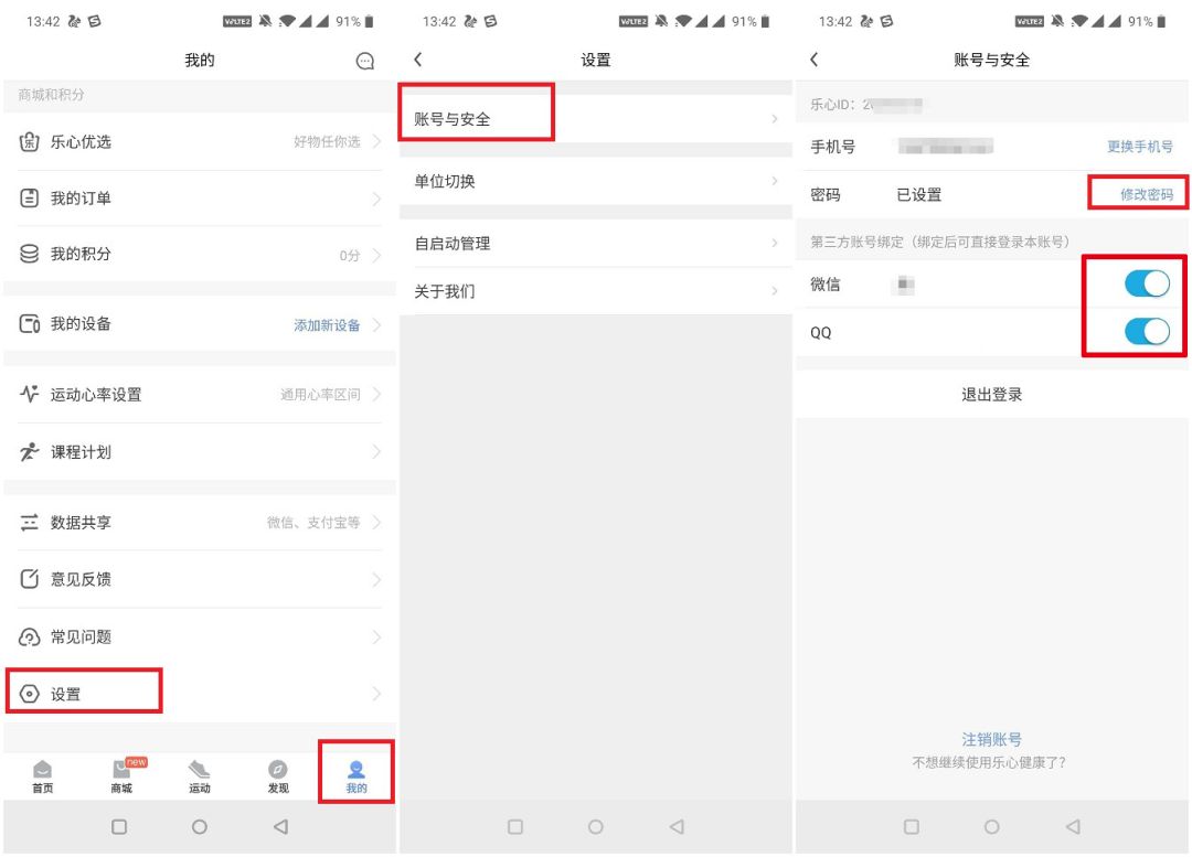 2.登陆乐心健康后,点击「我的-设置-账号与安全-设置密码」,设置一个密码,建议设置简单的密码。