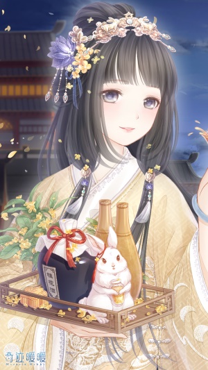 【月桂满酌】含正常姿势与特殊姿势,精美可移动摆件“冷露无声”、“玉兔清辉”,海报展示妆容为“温暖恋梦” 。