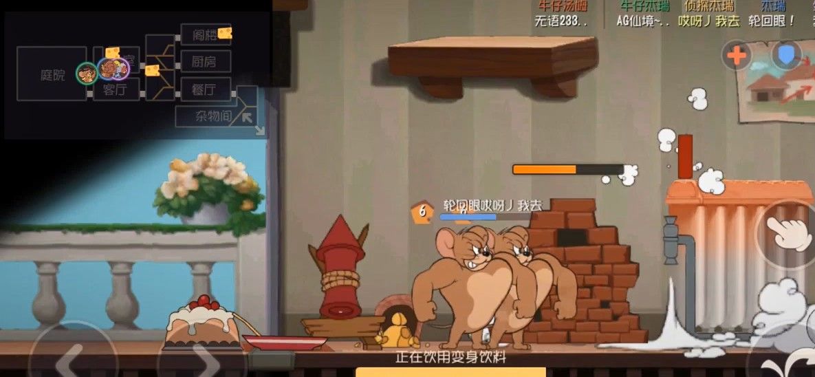 现在的局势开局被捉的机会很小,因为机械鼠返回,看小地图,就可以看到猫咪大致在什么地方,只要不作死,非得去有猫咪的房间,基本上头一分钟不会出现被捉的情况,这一把就是开局分开进房间,杰瑞和侦探分别带队,两个运送奶酪,两个人推,至少不会被一锅端,而且开局发现猫咪的情况下,队友那边也安全多了,至少不会担心猫咪隐身,都别是这把。