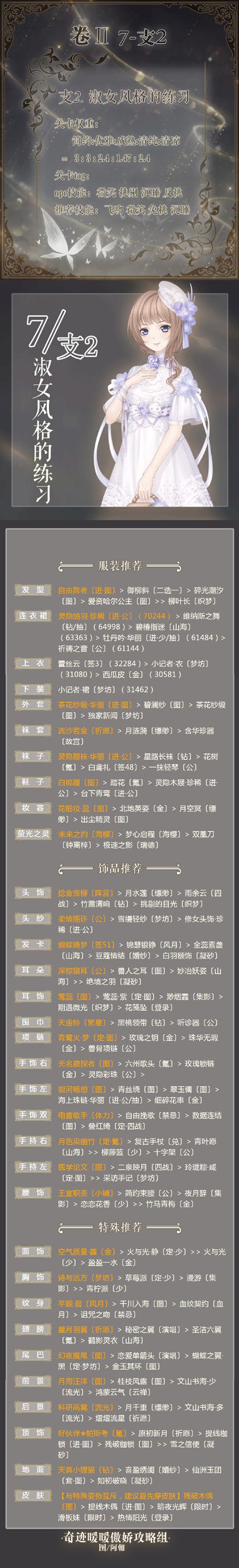 奇迹暖暖卷II第七章支2淑女风格的练习完美搭配攻略