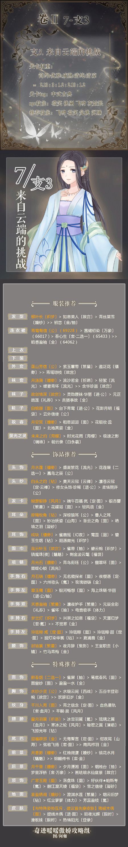 奇迹暖暖卷II第七章支3来自云端的挑战完美搭配攻略