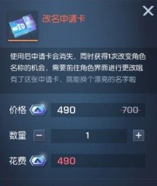 单纯以改名一次的价格横向对比,本作可以说代价是相当高了,但是跟本作的其他氪金项相比这还不算很贵。注意改名申请卡在购入并使用后即会被消耗,而且不是使用即改名,而是使用之后让玩家获得一次改名的机会。