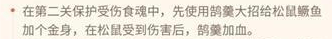 第二关保护受伤食魂,先使用鹄羹大招给松鼠鳜鱼加个金身,在松鼠受到伤害后,鹄羹加血。