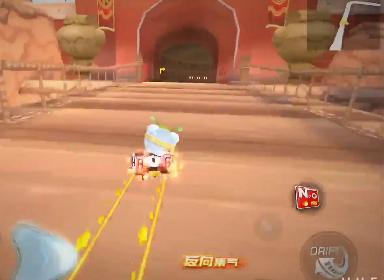一进入赛道就能感觉到这张图和其他几张新图的画风比较不同,因为是一座隐藏在漫漫黄沙中的神秘古城,沿路都是古香古色的城楼,非常具有华夏韵味。在刚开局是几个非常缓和的大弯,还是断漂补气触发连喷,几个小连喷之后就可以攒出一个氮气了。