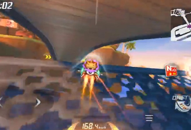 进入地图我们大概就能了解到这张图的难度在哪里了。开局左拐后会发现在我们左侧是没有围栏的,并且赛道很窄,速度过快一不小心就会掉下去,左拐过来时容易控制不住滑下去,小伙伴们要注意了。