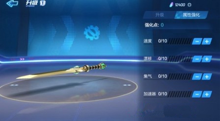 青钢剑的属性集气和加速时间是非常优秀的,所以这两点都不用特别的关注,而青钢剑的加速度、漂移、弯道速度都低的有点可怜,我们要升级的话加点路线肯定是按这个来的,这里给大家的建议是10、10、5、10这样的加点。