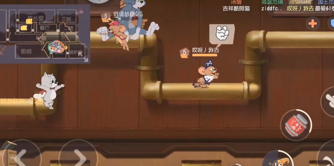 如果队友被捉,知道会在那个火箭绑人还好,直接先去蹲着,但是如果不知道,刻意去打的时候很好躲的,特别是汤姆,现在的鸟哨出来,弄得许多人都去汤姆了,一个无敌,碰到现在的鸟哨简直是专克,其次就是海盗的炸药桶,可以把火箭炸毁,虽然猫咪3秒就能修好,只要是一手火箭的话,猫咪还是不会放弃的,可以在那里蹲点,只要修补火箭金币砸中概率也是挺大的,特别是后面一个炸弹爆炸,也只要3秒而已。